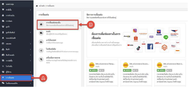 - 1. เมื่อเข้าสู่ระบบและร้านค้าแล้ว ไปที่เมนู “การเชื่อมต่อ” (Integrations)