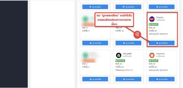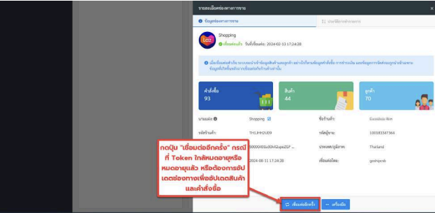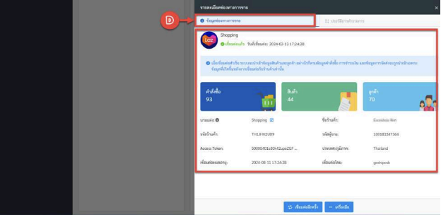 - C. เลื่อนลงไปด้านล่างจะแสดงช่องทางการขาย เลือกช่องทางที่ต้องการเชื่อมต่อใหม่อีกครั้ง กดปุ่ม “ดรูายละเอียด”