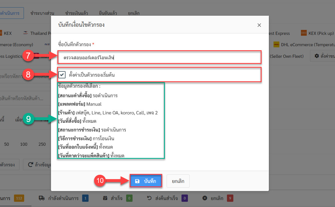 9. ทางร้านสามารถตรวจสอบความถูกต้องของเงื่อนไขตัวกรองได้ ก่อนกดบันทึก